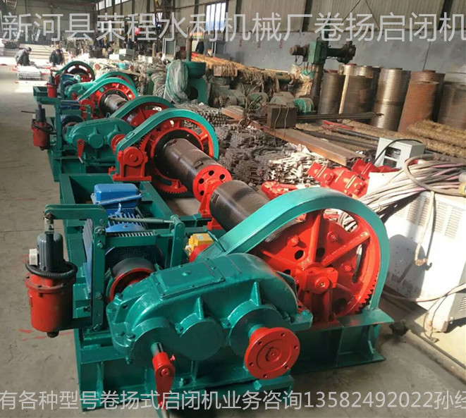 新河縣榮程水利機械廠卷揚啟閉機有多種型號:可以分為QPQ型普通卷揚啟閉機、QPK型快速卷揚啟閉機、QPG型高揚程卷揚啟閉機、QPT型臺車式卷揚啟閉機,QPM型門式卷揚啟閉機,QH型弧門卷揚啟閉機。卷揚啟閉機又分為:平門卷揚式啟閉機;弧形門卷揚式啟閉機;雙吊點卷揚式啟閉機;快速卷揚式啟閉機;移動式臺車啟閉機;雙吊點卷揚式啟閉機分為:集中驅動和單獨驅動兩種;卷揚式啟閉機手搖、電動兩用式規格分為:5噸、8噸、12噸、16噸、25噸;電動式規格分為:40噸、63噸、80噸、100噸、125噸、160噸、200噸,可以根據用戶要求設計,并能生產雙吊點卷揚式啟閉機,該機是一種水利工程專用機械,廣泛用于水利工程閘門的啟閉,是農田灌溉、水產養殖、農業經濟開發區、污水處理廠、水利發電站、水庫(水閘、堤壩、隧道、管 道)等進水、退水閘的配套機械,山區、平原有、無電地區均可使用。