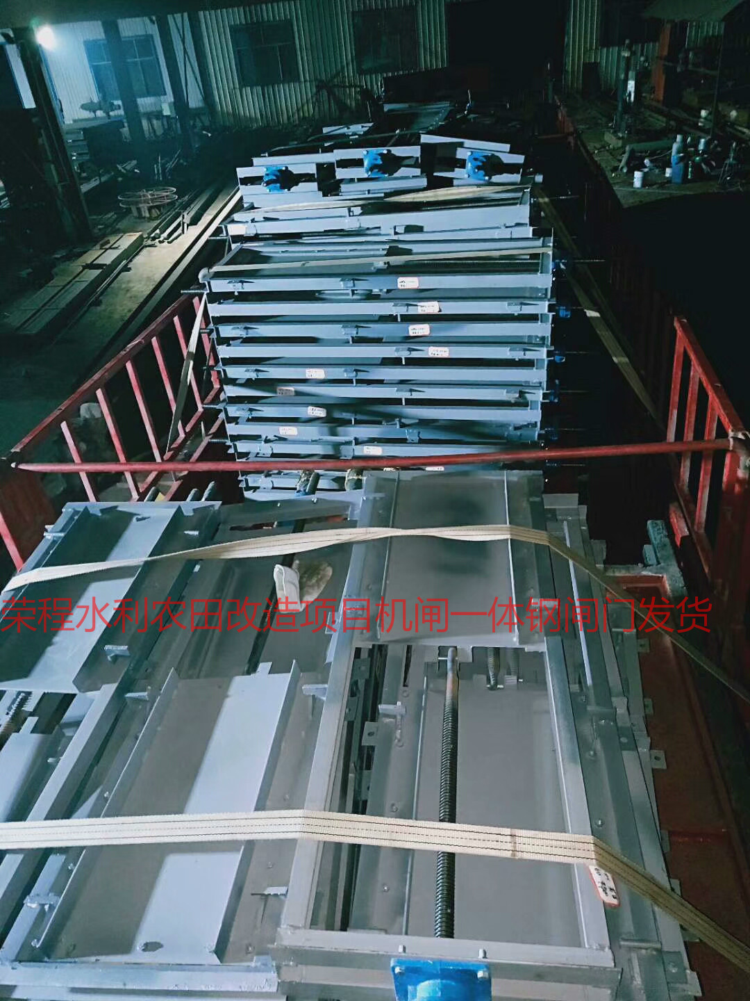 機(jī)閘一體鋼制閘門是榮程水利生產(chǎn)的20多種閘門中的一種鋼制閘門,是閘門和啟閉機(jī)一體的水利設(shè)備,該設(shè)備用于排水工程、污水處理、水利、水電工程中常用的攔水、止水設(shè)備,由門框、閘板、止水橡皮及可調(diào)式鍥型壓塊等部件組成。不銹鋼閘門久用磨損后,其密封面可通過鍥型壓塊的調(diào)整來保證正常工作。 該設(shè)備以優(yōu)質(zhì)鋼板為基材,采用橡膠止水、防腐方式為表面進(jìn)行噴沙除銹及熱噴鋅,鋼制閘門具有結(jié)構(gòu)合理堅(jiān)固、耐磨耐蝕性強(qiáng)、性能可靠;安裝、調(diào)整、使用、維護(hù)方便等特點(diǎn)。